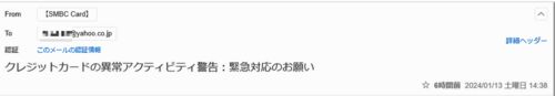 今回は迷惑メールでなく受信箱に入ってました。 まいどー、Yahoo!メールに着弾で。(※ リンク先のサイトはアクセス不可?) 初期設定では画像は表示されませんが、正規サイトの本物URLを参照してるので画像だけでは真偽判定は困難かもです。文面は本物を知らな…