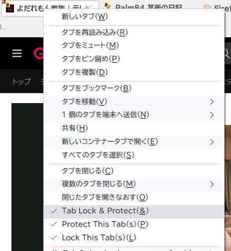 671名無しさん@お腹いっぱい。 (ワッチョイ cec0-h0lK)2022/06/24(金) 21:24:06.17ID:jVYuRG8a0>>673 昔のFIrefoxでできてたような タブのロックや保護を実現する スクリプトってないですか 672名無しさん@お腹いっぱい。 (ワッチョイ e376-BknV)2022/06/24(金) 21:25:44.48ID:6FTBDFGj0 アリスさんのところにあります 673名無しさん@お腹いっぱい。 (アウアウウーT Sa47-sER5)2022/06/24(金) 21:45:24.04ID:INrkF3K2a>>675 >>671 tabLock_mod2.uc.js tabProtect_mod2.uc.js 674名無しさん@お腹いっぱい。 (ワッチョイ 23a6-I+Ib)2022/06/24(金) 21:47:27.71ID:3bwbzN530>>678 95/tabLock_mod2.uc.jsのことだと思うけどタブを閉じるのを抑制しないから アドオンのDisable Tab Closeのが使いやすい つかスクリプト名ぐらい書けよめんどくせー奴だな 675名無しさん@お腹いっぱい。 (ワッチョイ 23a6-I+Ib)2022/06/24(金) 21:51:02.34ID:3bwbzN530>>680 >>673 tabProtect_mod2.uc.jsなんてのもあるのか ありがとうございます 676名無しさん@お腹いっぱい。 (ワッチョイ e376-BknV)2022/06/24(金) 21:53:16.82ID:6FTBDFGj0 tabProtect_mod2.uc.js でタブを閉じれなくなるでしょ 677671 (ワッチョイ cec0-h0lK)2022/06/24(金) 22:56:38.32ID:jVYuRG8a0 ありがとうございます いろいろ試してみます 678名無しさん@お腹いっぱい。 (ワッチョイ 36b9-l4pO)2022/06/24(金) 22:59:08.54ID:OQpM3KD60 >>674 あんたのほうがめんどくさくね? 679名無しさん@お腹いっぱい。 (ワッチョイ 87ee-VVUE)2022/06/24(金) 23:00:00.25ID:YE44cDdG0 zzzz-tabContextMenu_combining_tabProtect_and_tabLock.uc これも入れればよろし 680名無しさん@お腹いっぱい。 (アウアウウーT Sad3-tCSL)2022/06/25(土) 09:07:28.59ID:3/5WtWkBa >>675 zzzz-tabContextMenu_combining_tabProtect_and_tabLock.uc これも入れたし