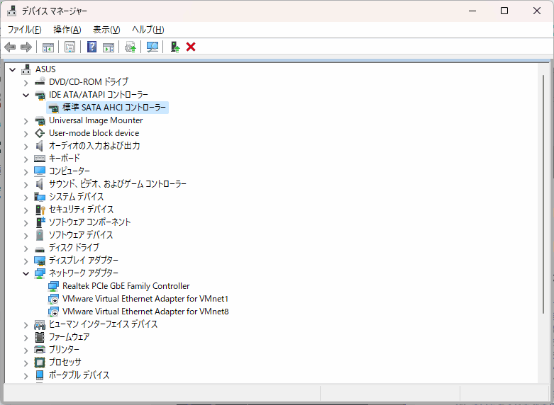- デバイスマネージャーから IDE ATA/ATAPI コントローラー のドライバーを標準のものに入替